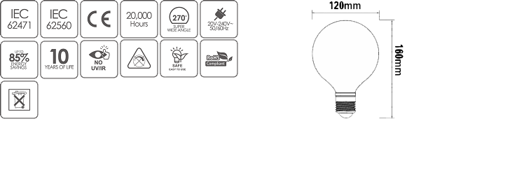 | LLG120E27-16W-2K | 2700K | 1760lm | >80 | 12pcs/ctn |